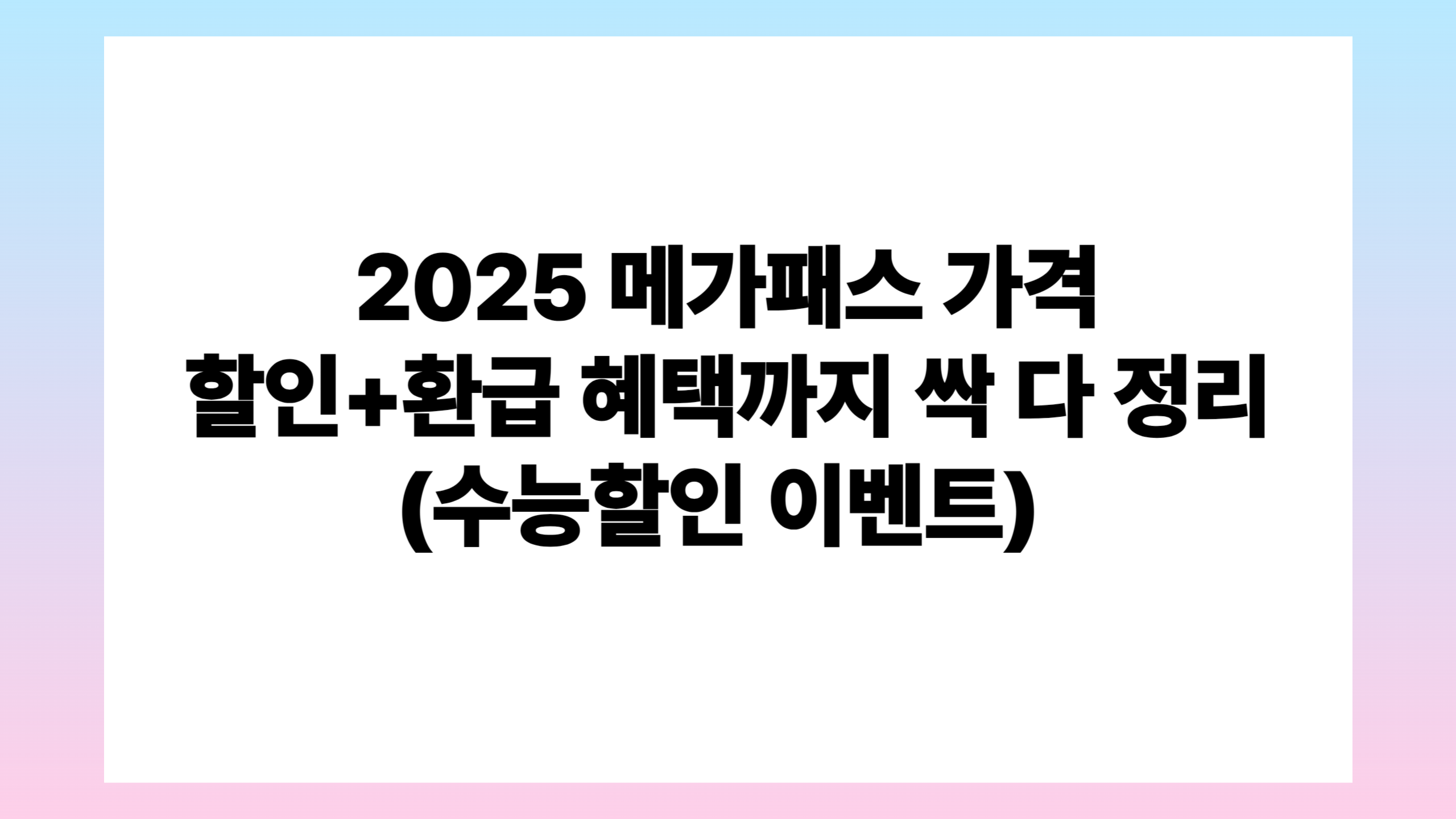 2025년 기준 메가스터디 메가패스 가격 및 할인 혜택 완전정리! 예비고1·2·3 대상 패스 종류, 환급형 혜택, 교재캐시 포함 상세 안내. 수능 이후 이벤트 할인까지 확인하세요.